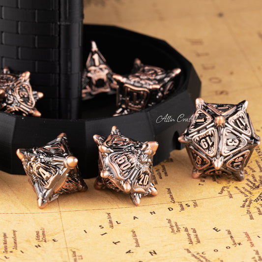 Dados huecos de metal con forma de cabeza de dragón para jugadores de juegos de rol, dados de metal para Dungeon and Dragon